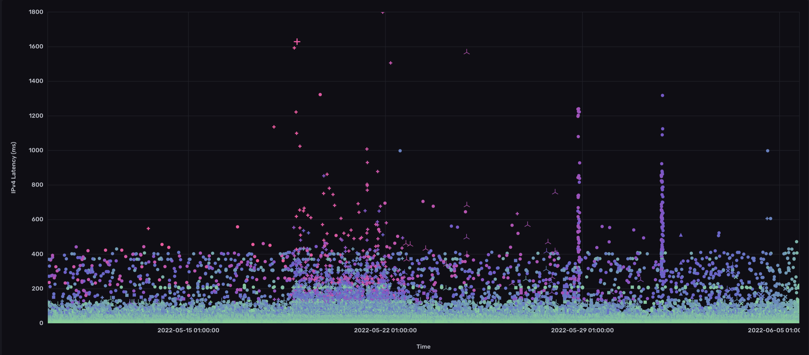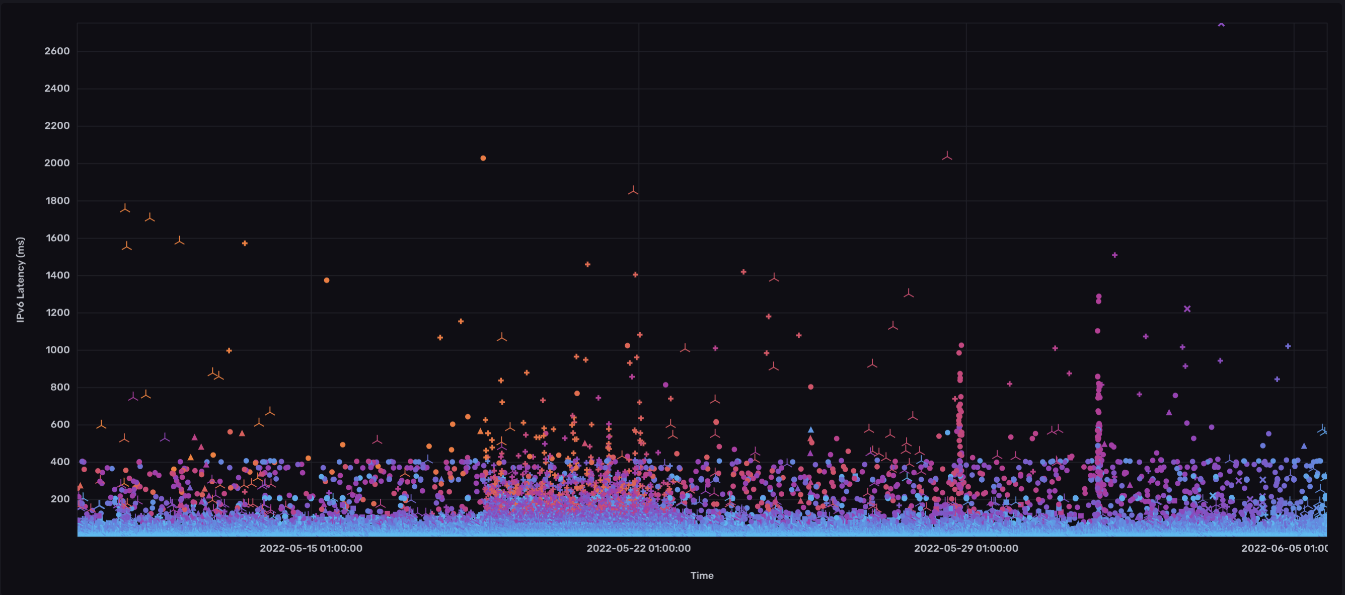 We then used Influx’s flux scripting language to do some simple comparisons on whether IPv4 or IPv6 was faster.